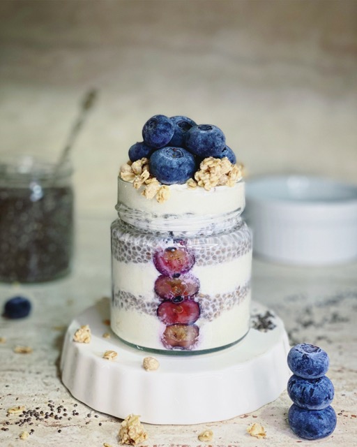 1. In una ciotola, mescola i semi di chia con il latte di mandorla e il cacao;