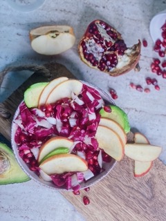 4. Completa la tua insalata con le fettine d’arancia, i chicchi di melograno e le noci;