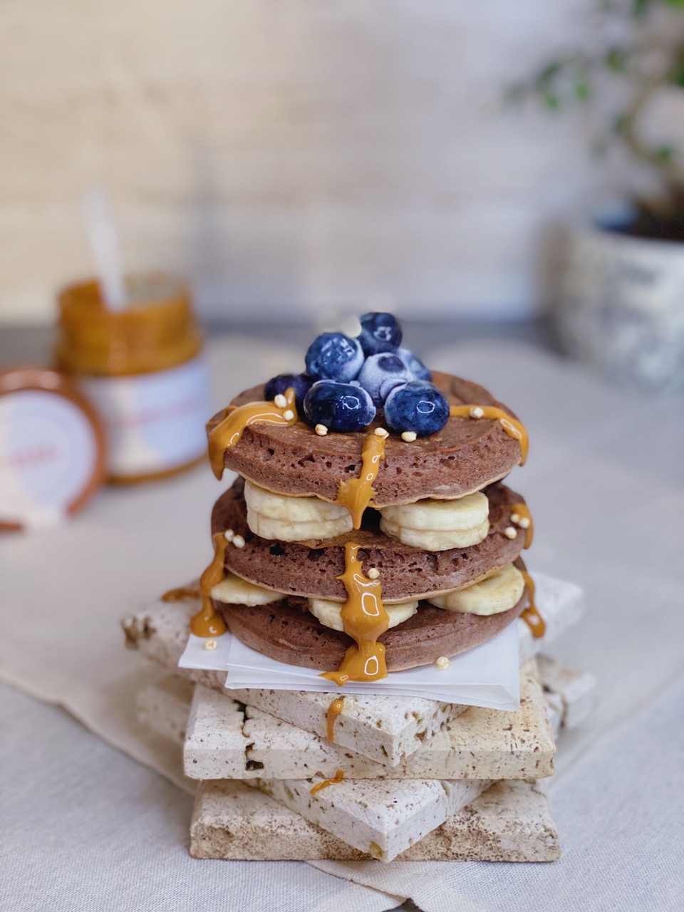 Questi pancakes al cacao con marmellata e albicocche sono una ricetta dolce semplice e leggera, perfetta per la colazione o la merenda. Senza uova né latticini, si preparano in pochi minuti e uniscono il gusto intenso del cacao alla freschezza della frutta, per iniziare la giornata con energia e leggerezza.